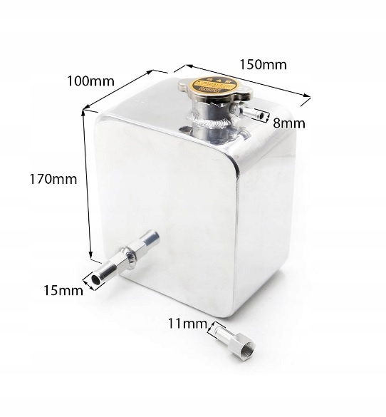 Uniwersalny zbiorniczek zbiornik wody lub wyrównawczy o pojemonści 2l. Aluminiowy lekki sportowy polerowany do uniwersalnego zastosowania.